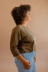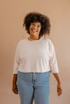 The Acacia top is a raglan t-shirt with a crew neckline and dolman sleeves. Choose between two different lengths; cropped (View A) or regular (View B). The Acacia top features three-quarter length sleeves that can be easily lengthened or shortened. Style View A with your favorite high waisted pants, or layered over a dress or skirt. Wear View B with your favorite mid rise or low rise pants or skirts.